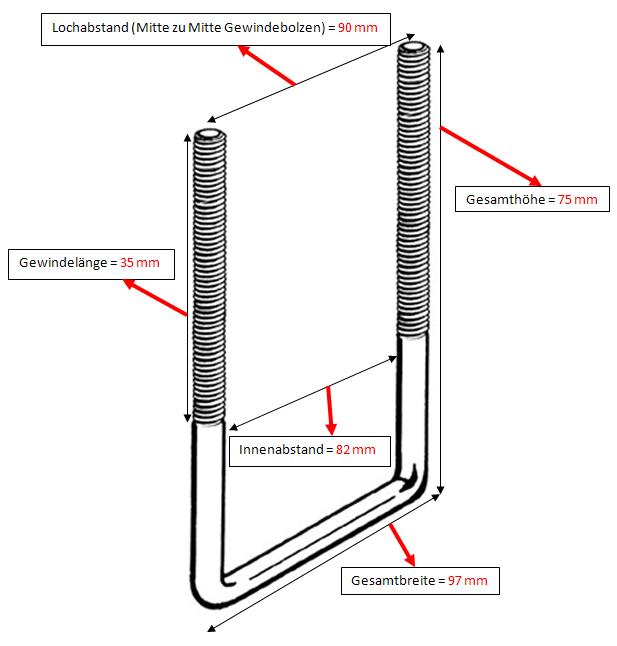 Afmetingen: 90x90mm, afstand tussen beugels 82mm.